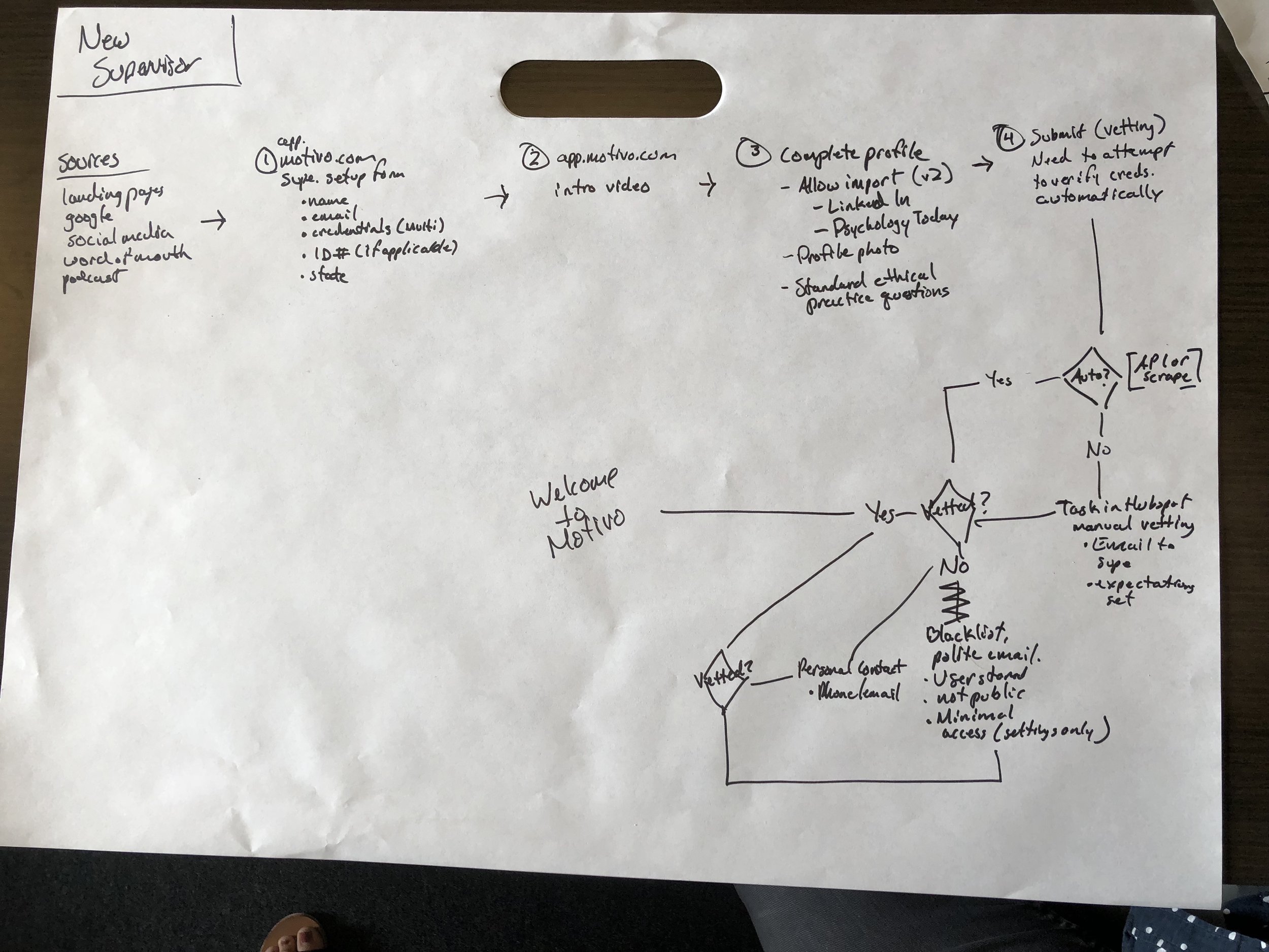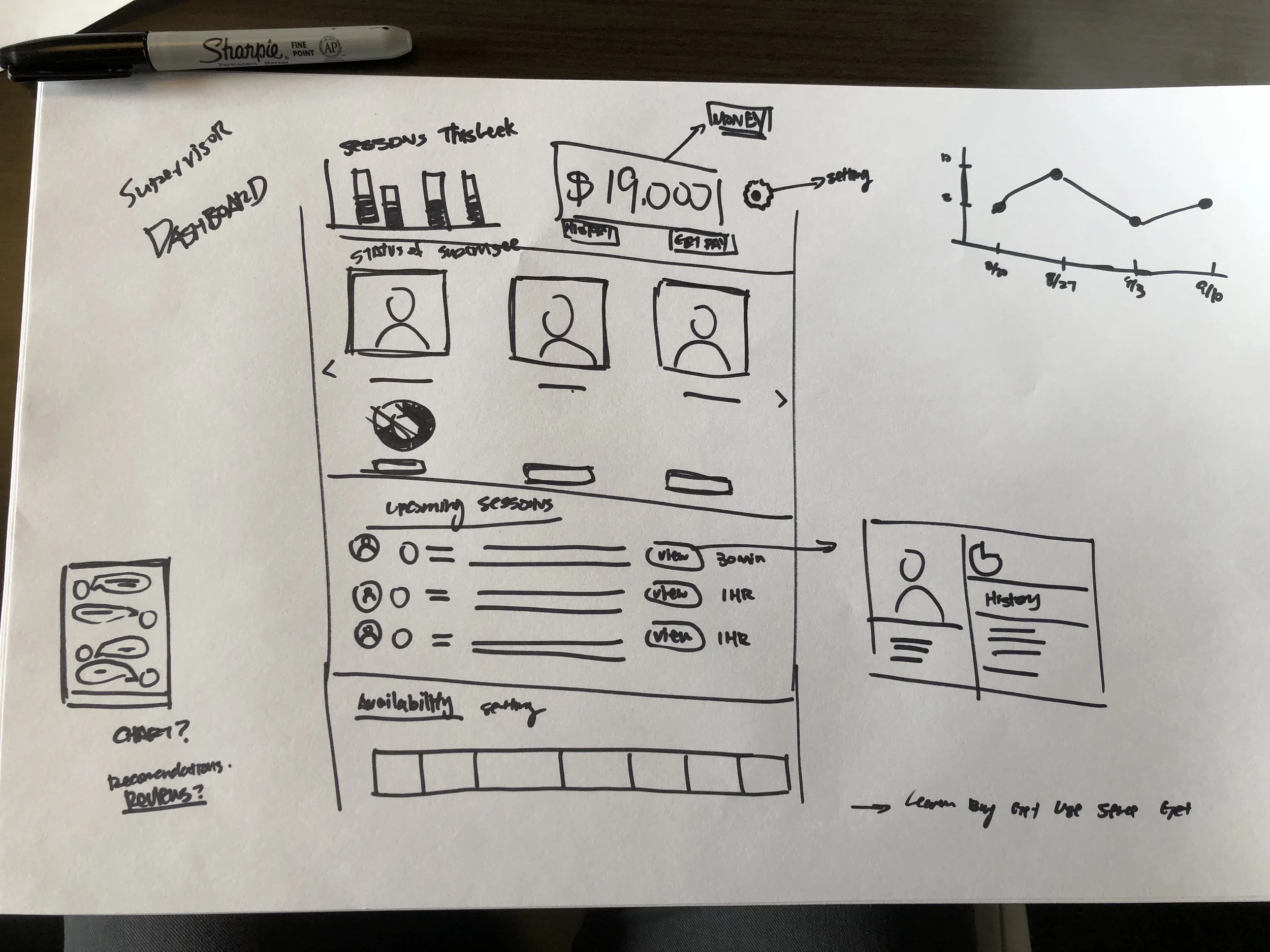 Initial wireframes to map out the onboarding experience for the supervisee. Go over with the founder and make sure the flow makes sense. Also communicated with the developer to go over the feasibility of the onboarding portal.