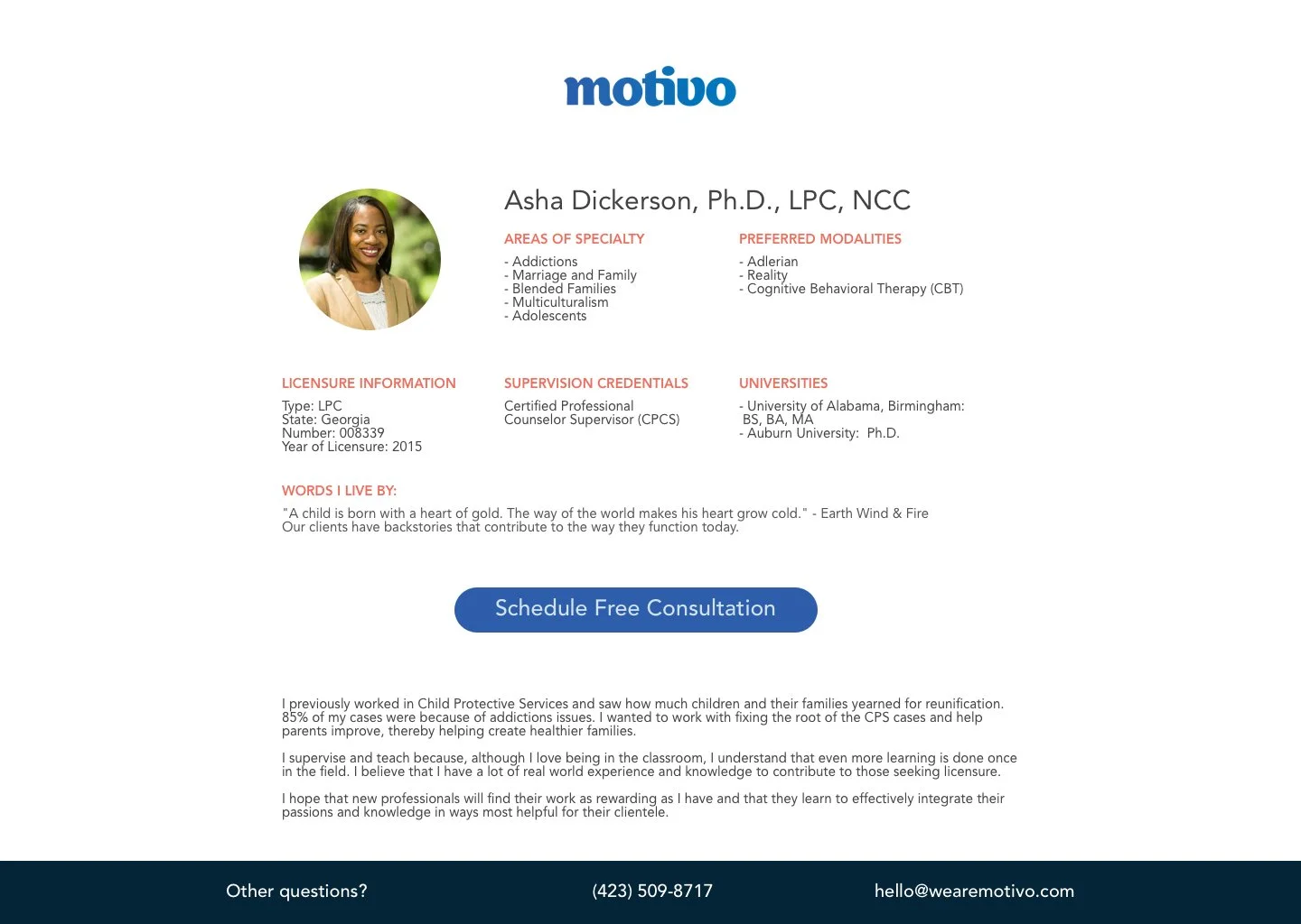 Motivo connects therapists with vetted clinical supervisors from the beginning to the end of the therapist licensure process. We provide accessible, affordable supervision in a completely virtual environment.
